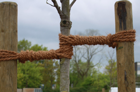 Bis die Wurzeln im Boden dem Baum Halt geben, braucht es unter Umständen ein Gerüst